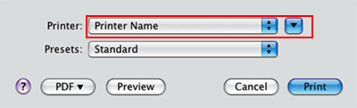 Sélectionnez l'imprimante d'exécution dans [Nom de l'imprimante] (ou [Sélectionner imprimante]).