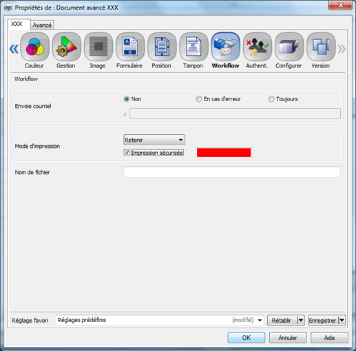 Cochez [Impression sécurisée] sous l'onglet [Workflow].