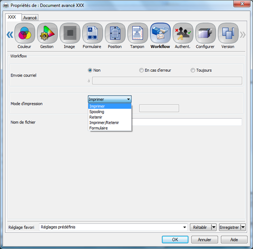 Sélectionnez [Retenir] ou [Imprimer/Retenir] dans [Mode d'impression].