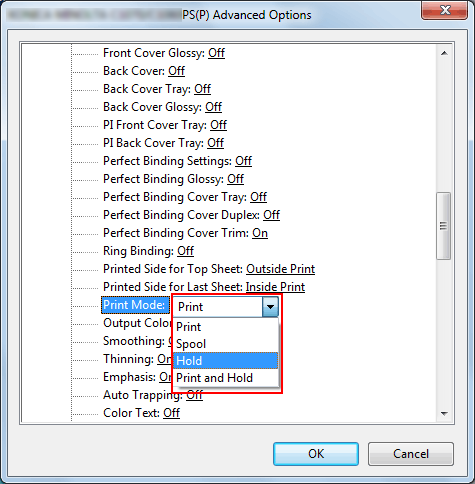 Sélectionnez [Retenir] ou [Imprimer/Retenir] dans [Mode d'impression].