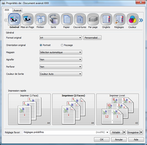 [Enregistrer pour tous utilisateurs] | Pour partager entre tous les utilisateurs d'un même ordinateur, enregistrez le réglage actuel comme réglage favori. Accessible uniquement à l'utilisateur doté des droits d'administrateur. |
