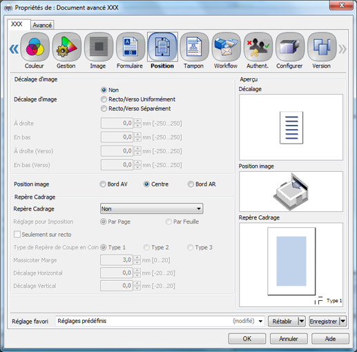 [Réglage pour Imposition] | [Par Page], [Par Feuille] | Précisez si vous souhaitez le repère de cadrage par page ou par feuille. |