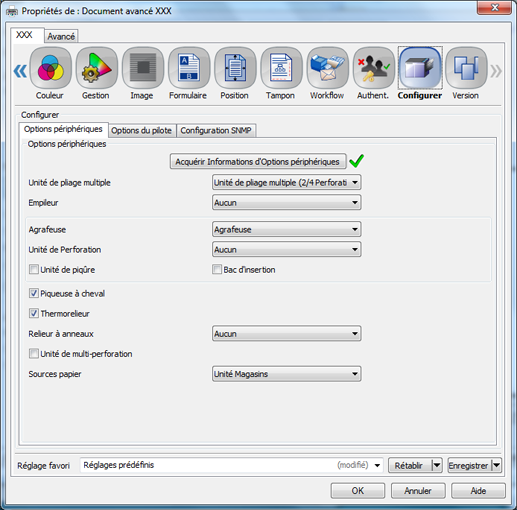 [Acquérir Informations d'Options périphériques] | Détection d'un périphérique installé en options sur la machine.