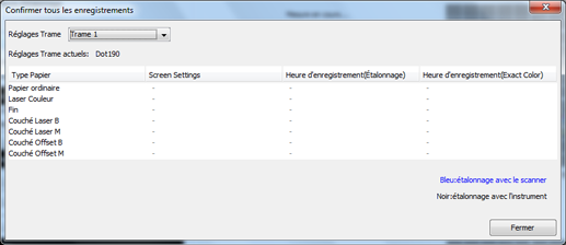 La liste affiche les dates et l'heure par type de papier et type de trame.