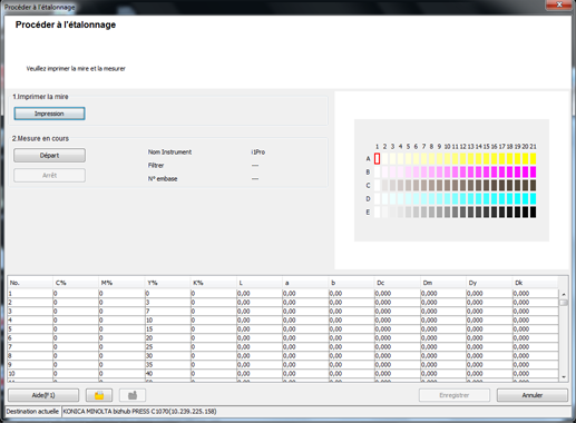 L'impression de la charte est exécutée. L'écran [Procéder à l'étalonnage] réapparaît à la fin de l'impression.