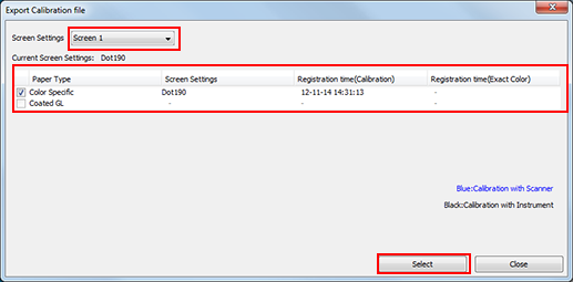 L'écran [Exporter le fichier de calibrage] s'affiche.