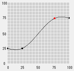 De plus, les positions à 25 %, 50 % et 75 % peuvent être ajoutés automatiquement à la courbe comme points de référence conformément aux réglages de l'onglet [Luminosité/contraste]. Vous pouvez également régler la courbe de tonalités en faisant glisser le point.