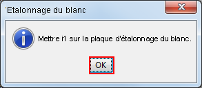 Placez le colorimètre sur sa plaque d'étalonnage blanche et cliquez sur [OK].