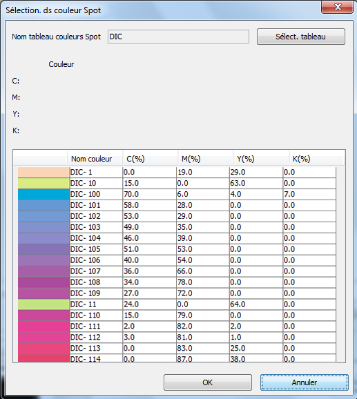Dans la liste, sélectionnez la table de couleurs spot dans laquelle sélectionner la couleur spot.