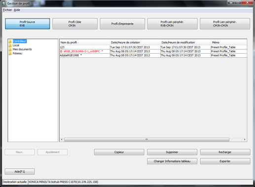 [Copieur] | Duplique le profil sélectionné dans le contrôleur d'image, lorsque [Contrôleur] est sélectionné dans l'arborescence. | |