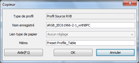 Vous pouvez dupliquer dans le contrôleur d'image le profil de la source RVB enregistré dans le contrôleur.