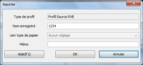L'écran[Importer] se referme et l'écran [Gestion de profil] réapparaît.