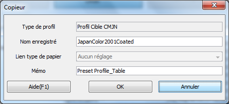 Vous ne pouvez pas enregistrer le profil de cible CMJN sous un nom utilisé dans le contrôleur d'image.