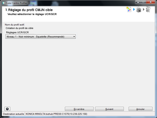L'écran [2 Calculer profil du CMJN cible] s'affiche.