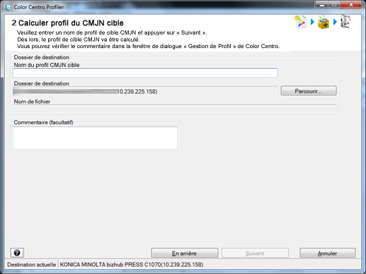 Dans le champ Commentaire, entrez, si besoin est, un commentaire à intégrer au profil que vous créez. Vous pouvez confirmer le commentaire en sélectionnant le profil sur Color Centro Profiler.