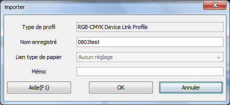 Vous ne pouvez pas enregistrer le profil de lien périphériques RVB-CMJN sous un nom utilisé dans le contrôleur d'image.