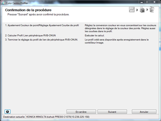 L'écran [Sélectionner l'opération de réglage du profil de lien de périphérique CMJN-CMJN] s'affiche.