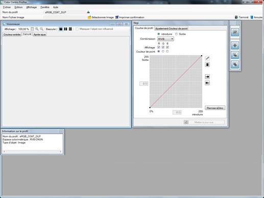 L'écran [Ajustement Couleur de point/Ajustement Courbe de profil] permet d'ajuster la courbe de profil et le résultat de sortie d'une couleur spécifiée.