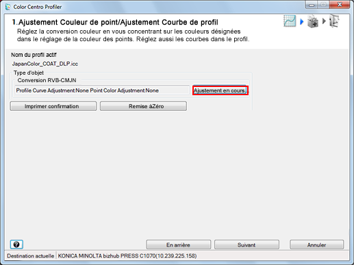 Pour ajuster la couleur de point et la courbe de profil, cliquez sur [Ajustement en cours].