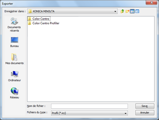 Vous pouvez exporter un profil de lien périphériques CMJN-CMJN du contrôleur d'image dans [Local], [Mes documents] ou [Réseau].
