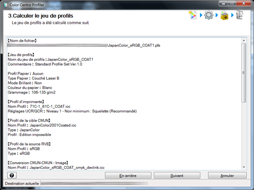 Color Centro Profiler se referme et l'écran [Gestion de configuration couleur] réapparaît.
