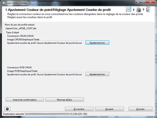 L'écran [Ajustement Couleur de point/Réglage Ajustement Courbe de profil] réapparaît.