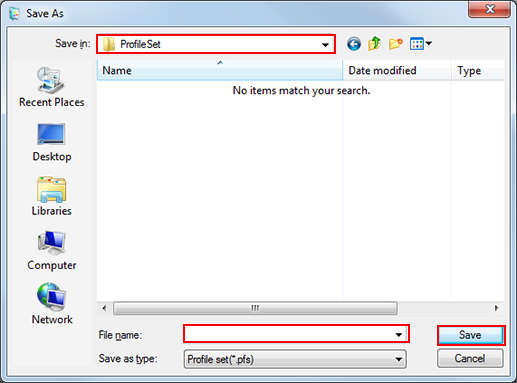 Dans l'arborescence et la liste de [Gérer jeu de profils existant], sélectionnez un jeu de profils.