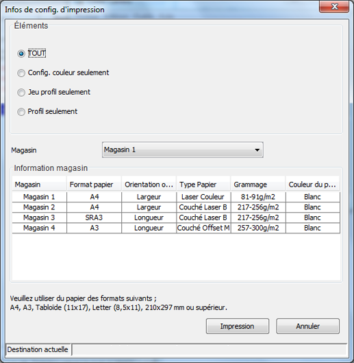 Vous pouvez imprimer les réglages du contrôleur d'image connecté.