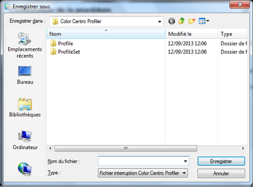 Vous pouvez enregistrer un travail inachevé sur l'écran de l'assistant Color Centro Profiler sous forme de fichier.