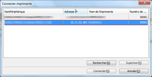 L'écran [Connecter imprimante] s'affiche. Pour en savoir plus sur l'écran [Connecter imprimante], voir Ecran Connecter imprimante.
