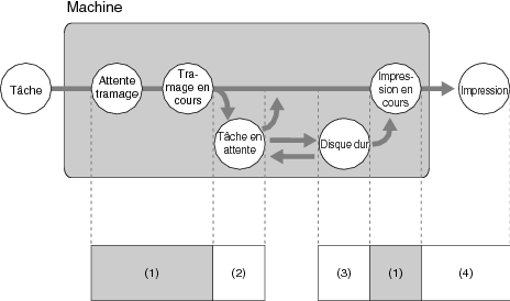 Les objets de la gestion des tâches de Job Centro concernent les travaux de copie, de numérisation et d'impression.