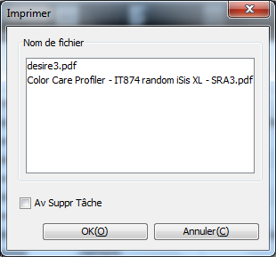 Pour supprimer la tâche de la liste des tâches en attente une fois l'impression terminée, cochez [Av Suppr Tâche].