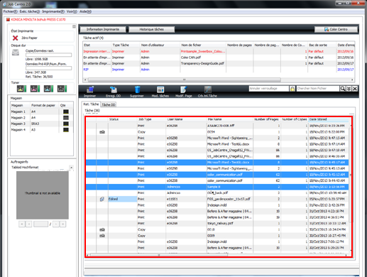 Vous pouvez imprimer une tâche en attente. Outre la méthode suivante, vous pouvez aussi faire un glisser-déposer de la tâche sélectionnée dans la liste des tâches actives pour l'imprimer.