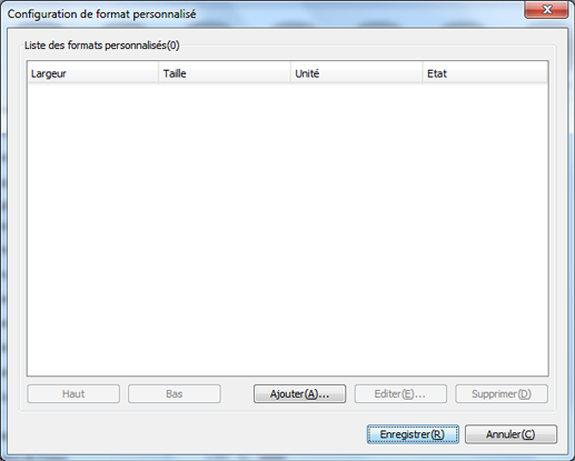 Cliquez sur ce bouton pour enregistrer les formats papier personnalisés.