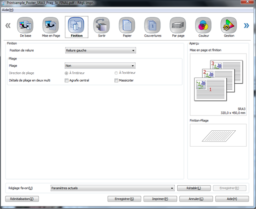 Les éléments de réglage ici sont les mêmes que ceux de l'écran "Finition" du pilote Plug-in PS. Pour une description des éléments de réglage, voir Finition.