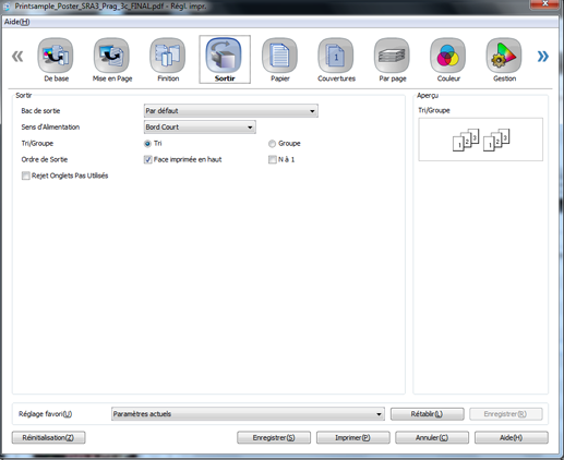Vous pouvez configurer la sortie du réglage d'impression.