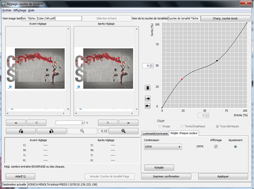 Vous ne pouvez pas régler la courbe de tonalité dont le réglage de la trame est personnalisé. Dans ce cas, réglez la courbe de tonalité avec Color Centro et appliquez le réglage à la tâche.