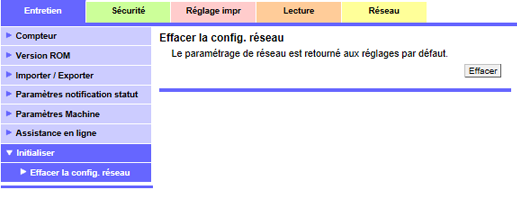 Cliquez sur [Initialiser] dans le menu de l'onglet [Entretien] pour afficher cet écran.