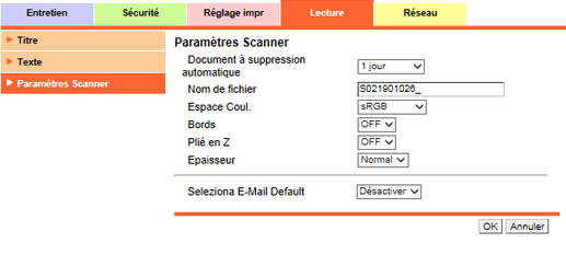 Cliquez sur [Paramètres Scanner] sous l'onglet [Lecture] pour afficher cet écran.