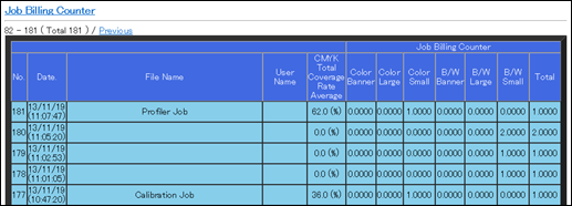 Vous pouvez afficher le compteur de facturation pour chaque tâche. Veuillez toutefois noter que seules les tâches de sortie sont comptées. Les tâches de numérisation ne sont pas comptées.
