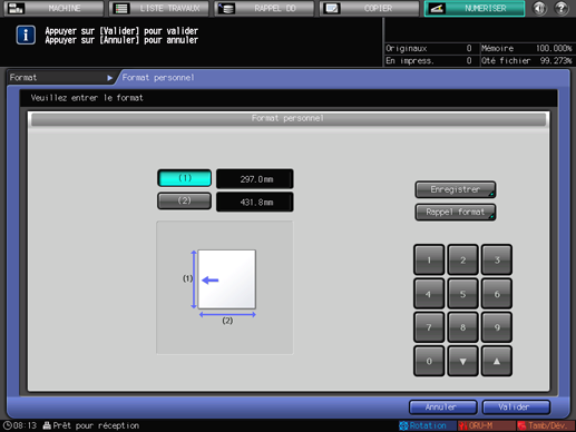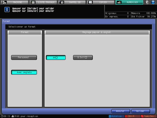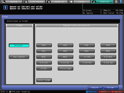 Pour en savoir plus, voir Personnalisé : copie d'un original de format personnalisé et Avec onglets : copie d'un original avec onglets.