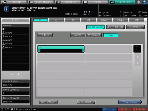 Pour revenir à l'écran [NUMERISER], appuyez sur [Adresse].