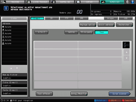 L'écran [NUMERISER] (Groupe) ne comporte pas [Réglage option], [Saisir adresse], [Rechercher], [A to Z], [Autres], [Principale] et [Tous].
