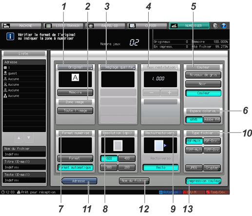 11 | [Adresse] | L'écran [NUMERISER] réapparaît. | ||
