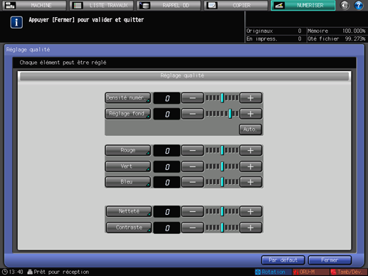 Réglez la densité, la tonalité et le contraste de tout l'original, la densité de fond et la forme des lettres ou des images.