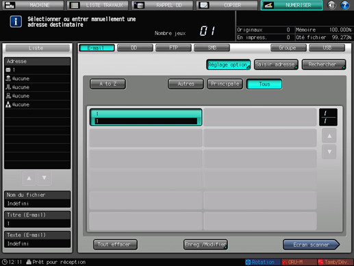 Pour revenir à l'écran [NUMERISER], appuyez sur [Adresse].
