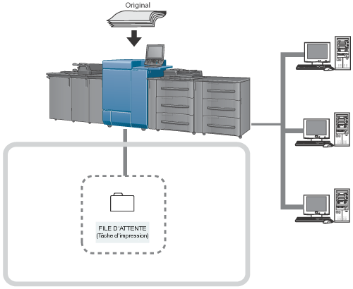Pour en savoir plus sur l'impression de données numérisées enregistrées en file d'attente, voir le guide de l'utilisateur livré avec le contrôleur d'image IC-310 ou le contrôleur d'image IC-308.