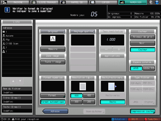 Pour revenir à l'écran [NUMERISER], appuyez sur [Adresse].