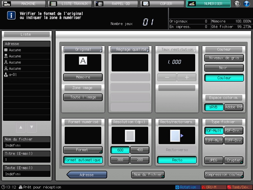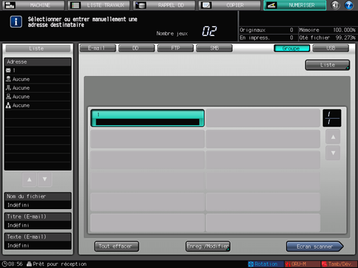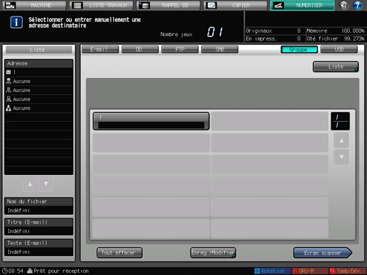 Pour revenir à l'écran [NUMERISER], appuyez sur [Adresse].