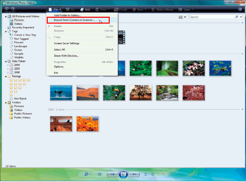 Dans le menu [Fichier], cliquez sur [Importer depuis un appareil photo ou un scanneur]